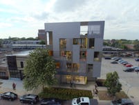 This mixed-use project, situated between the CTA Brown Line and the Metra Union Pacific North Line, takes inspiration from the area's history as an industrial corridor and vibrant business and commercial hub. By embracing the building's exposure to train commuters, and using a palette of materials consisting of expansive windows and corrugated aluminum siding combined with roof gardens and oversized balconies, a new paradigm is proposed by creating nine loft-style apartments above a ground floor commercial space. A scrim of perforated metal creates a veil of privacy between the apartments and train passengers yet ensures the passing of daylight through the translucent material so the units each enjoy abundant natural light. A north-facing internal courtyard creates further opportunities for light and views as well as the introduction of a natural element at grade level.